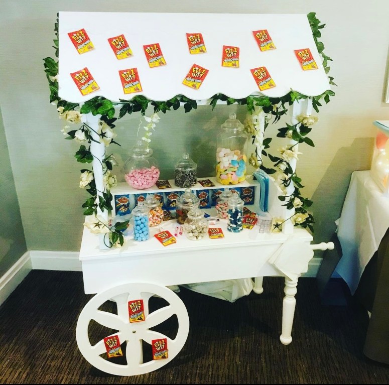 Beautiful handmade vintage sweet carts decorated to match your theme (including glass jars, scoops, and all other accessories).