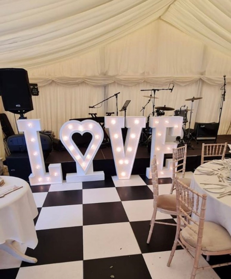 Our light up numbers and letters are a real statement piece for any event. We have the whole range A-Z in classic white or our rustic ‘LOVE’ offers something a bit different!