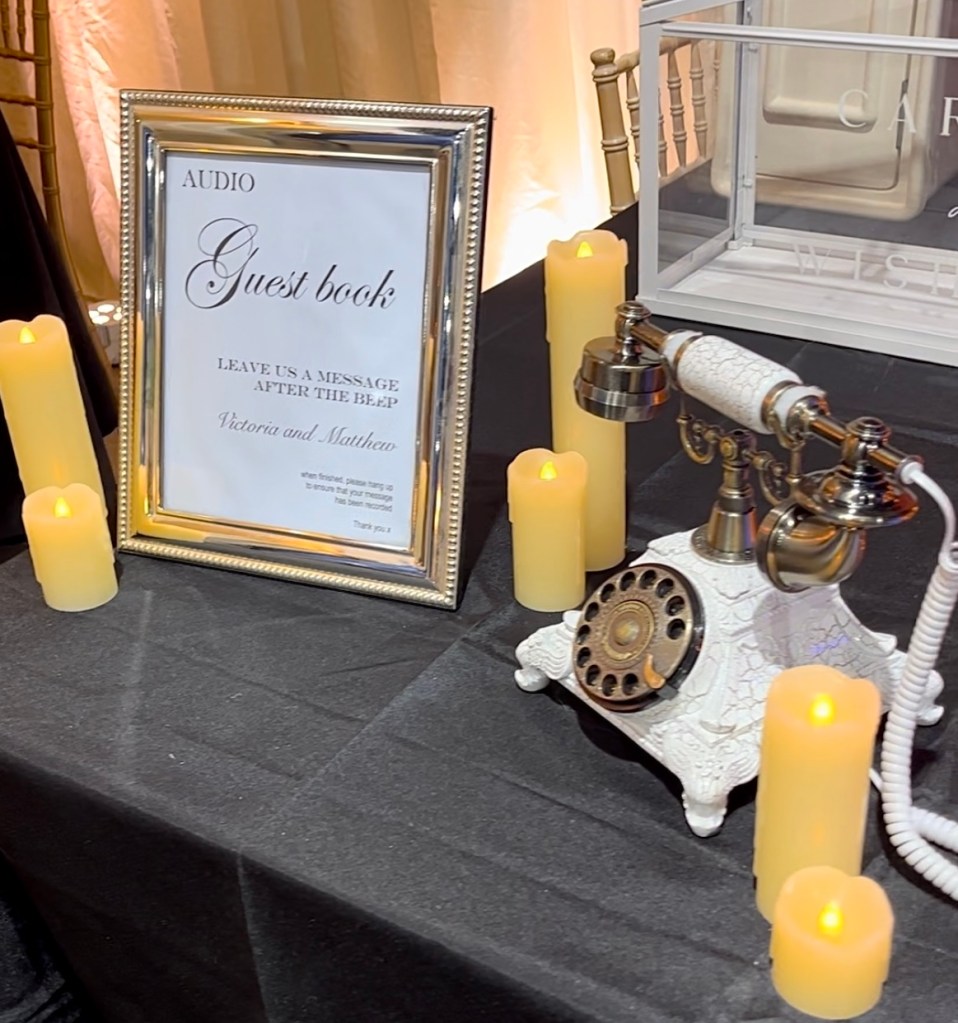 Allow your guests to record a message for you to cherish forever. The perfect way to capture memories from your loved ones on your special day.